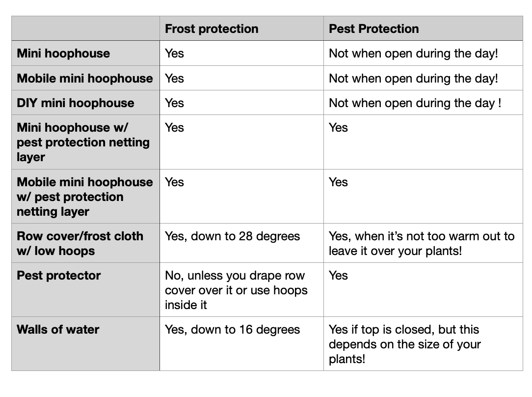 Which type of cover(s) for frost and pest protection are right for my raised garden beds?
