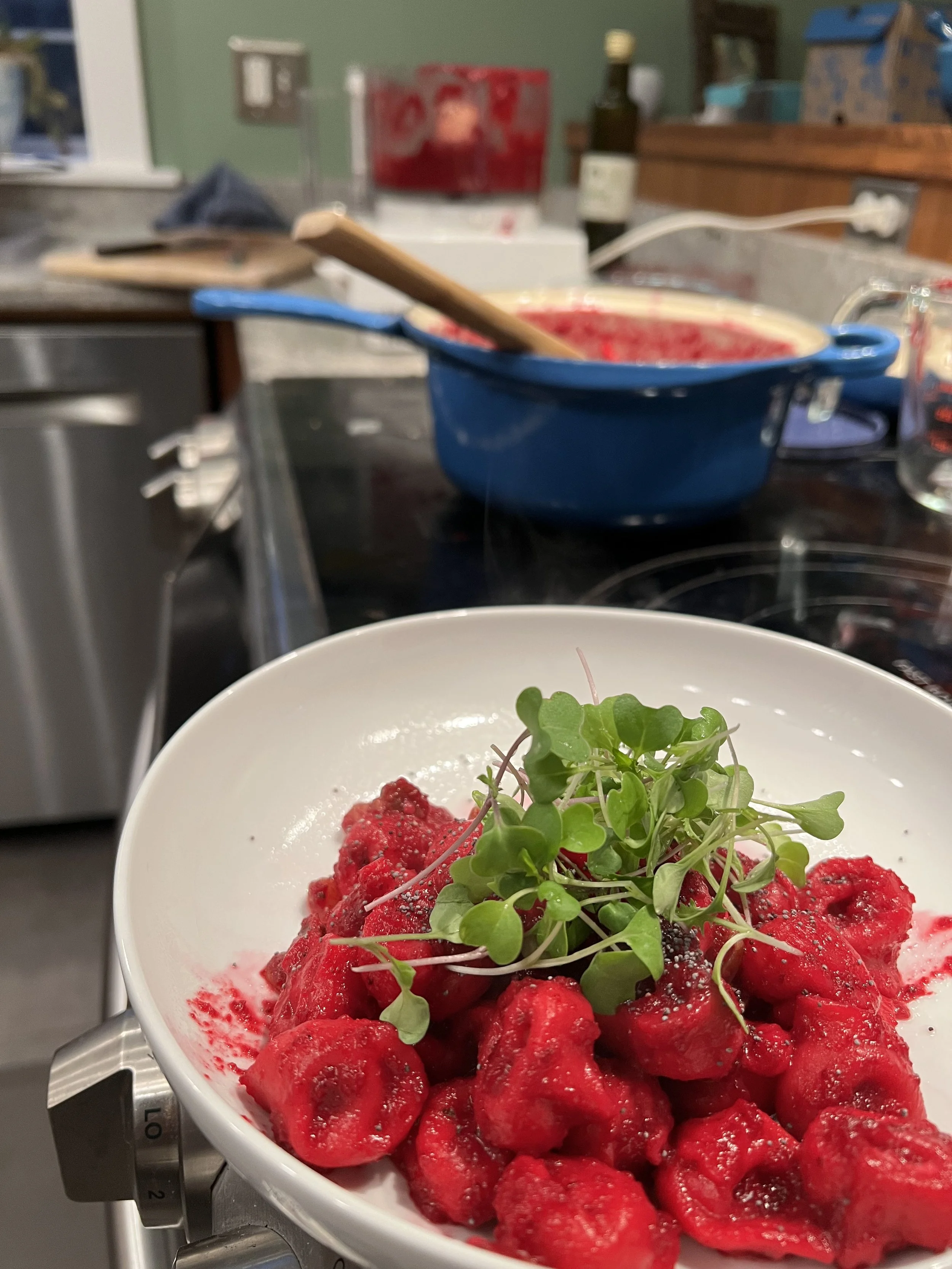 Super Simple Garden Recipes: Tortellini w/ Beet Sauce & Microgreens
