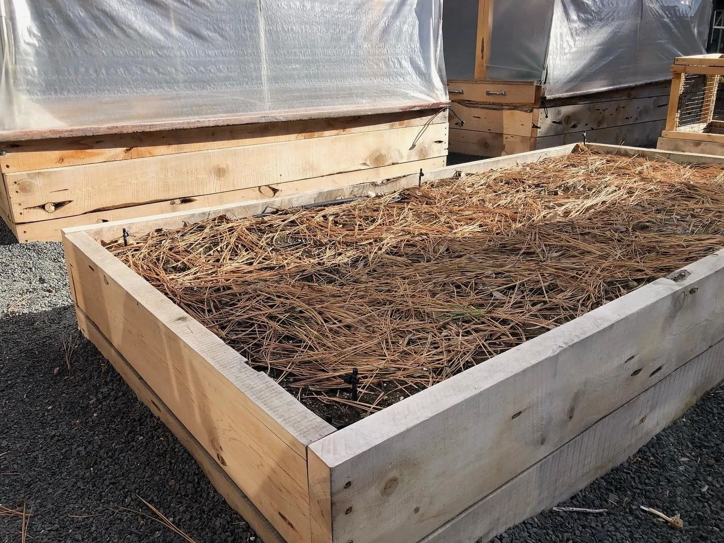 Mulch: We suggest applying 1/4”- 1/2” layer of compost to the top of your raised beds to then work in as an amendment in the spring. You can use pine needles, dried grass clippings, straw, or shredded leaves as additional mulch, too!